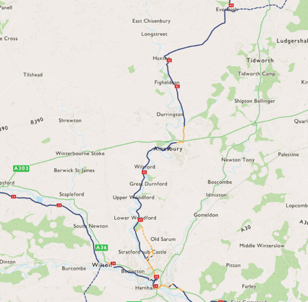 Mae Llwybr 45 yn croesi Gwastadedd Gogledd Wessex Downs a Salisbury. Mae'r darn hwn o gefn gwlad yn teimlo'n syml Saesneg ac yn bleser seiclo serch hynny.