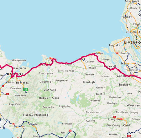 Wrth i chi ddilyn Llwybr Arfordir Gogledd Cymru o Gaergybi i Gaer byddwch yn mwynhau trefi arfordirol, golygfeydd mynyddig a golygfeydd o'r môr. Mae'r llwybr hyfryd hwn yn mynd â chi ar hyd arfordir Gogledd Cymru i Gaer hanesyddol. Mae'n ffordd wych o fwynhau treftadaeth ddiwylliannol a thirweddau hyfryd Prydain.