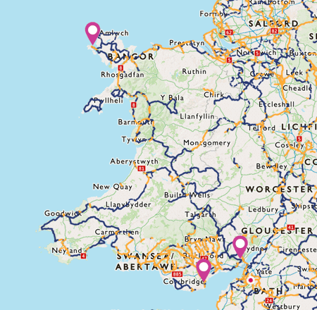 O Gaergybi yn y gogledd i Gaerdydd neu Gas-gwent yn y de, mae'r Lôn Las drawiadol yn rhedeg ar hyd Cymru gyfan.