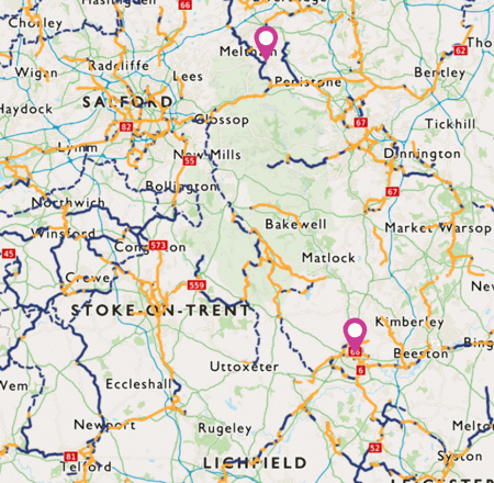 Mae Beicffordd Pennine yn llwybr pellter hir rhwng Derby a Berwick-upon-Tweed. Mae cam cyntaf (neu olaf) y llwybr rhwng Derby a Holmfirth ac fe'i gelwir yn Cycleway Pennine - Peak District.