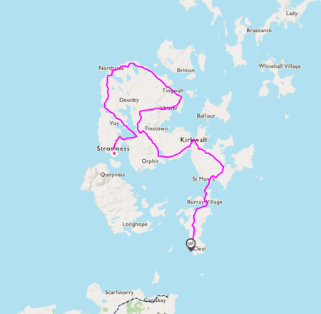 Mae Burwick i Kirkwall a Stromness yn llwybr 79 milltir ar draws Ynysoedd Erch yr Alban