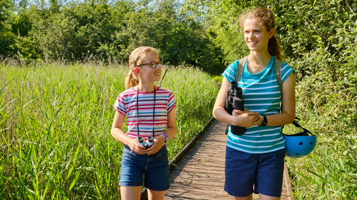 Bydd Rainbows, Brownies, Guides and Rangers yn dysgu sgiliau hanfodol, fel cynllunio llwybr, sgiliau beicio a nodi bywyd gwyllt. Credyd: Jon Bewley