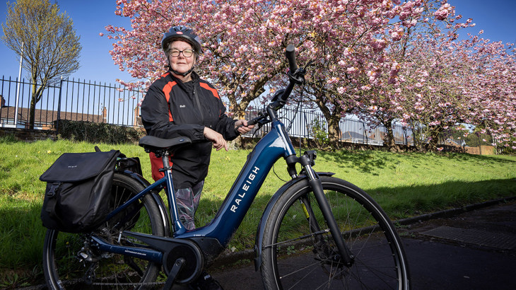 Fe wnaeth un o'n sesiynau blasu e-feic ei chyflwyno i ffordd iachach o gyrraedd y gwaith, tra'n ailgynnau cariad at feicio yn 60 oed. Mae Sarah yn esbonio: