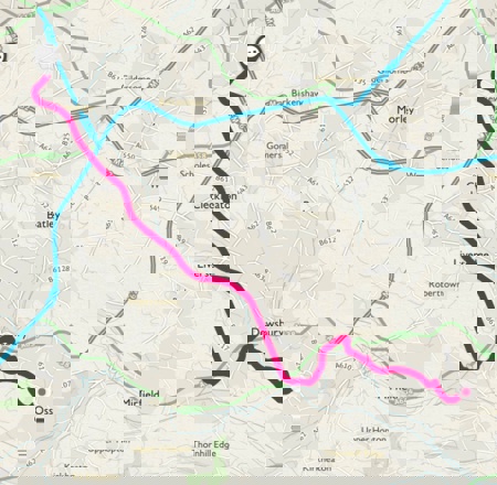 Exit Dewsbury station, crossing over the A638 (using a pedestrian crossing) and head downhill through quiet town centre streets. At the traffic lights cross the A644, turn immediately right through a steel arch to pick up the riverside section of the Calder Valley Greenway, following signs for National Route 66.