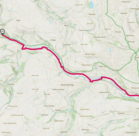 For a slightly longer ride you could start in Halifax and travel to Walsden which is 16 miles. In Halifax you have a short cycle through the town before joining the National Cycle Network near the Shay Stadium.