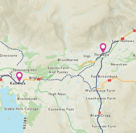 Threlkeld, at the eastern end, is a village in the shadow of the Blencathra mountain with a quarry and mining museum. The more adventurous might like to continue on a round trip back to Keswick via Castlerigg Stone Circle.