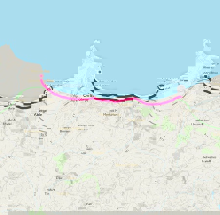 Enjoy this wonderful open breezy ride along the wide sea promenade that stretches from Rhos-on-Sea and Colwyn Bay to Pensarn.