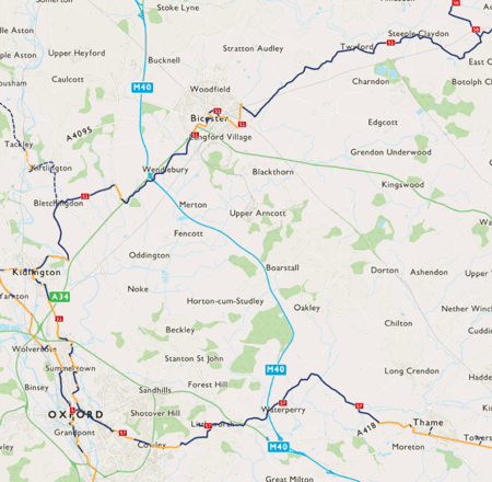 Starting in the historic city of Oxford the route takes you from Balliol College, one of Oxford's oldest colleges, founded around 1263, and out north along the Oxford Road. Passing Bletchingdon and Wendlebury the route takes you through the centre of Bicester.