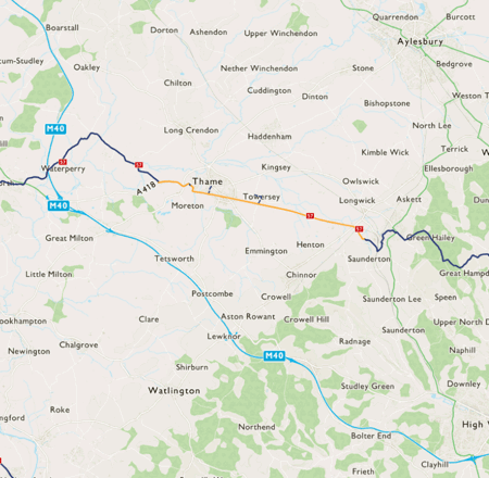 Oxford to Thame is largely on country lanes. Thame to Princes Risborough follows the Phoenix Trail along the route of a disused railway. Princes Risborough to Chesham leaves the relatively flat Oxfordshire countryside and continues on into the Chiltern Hills.