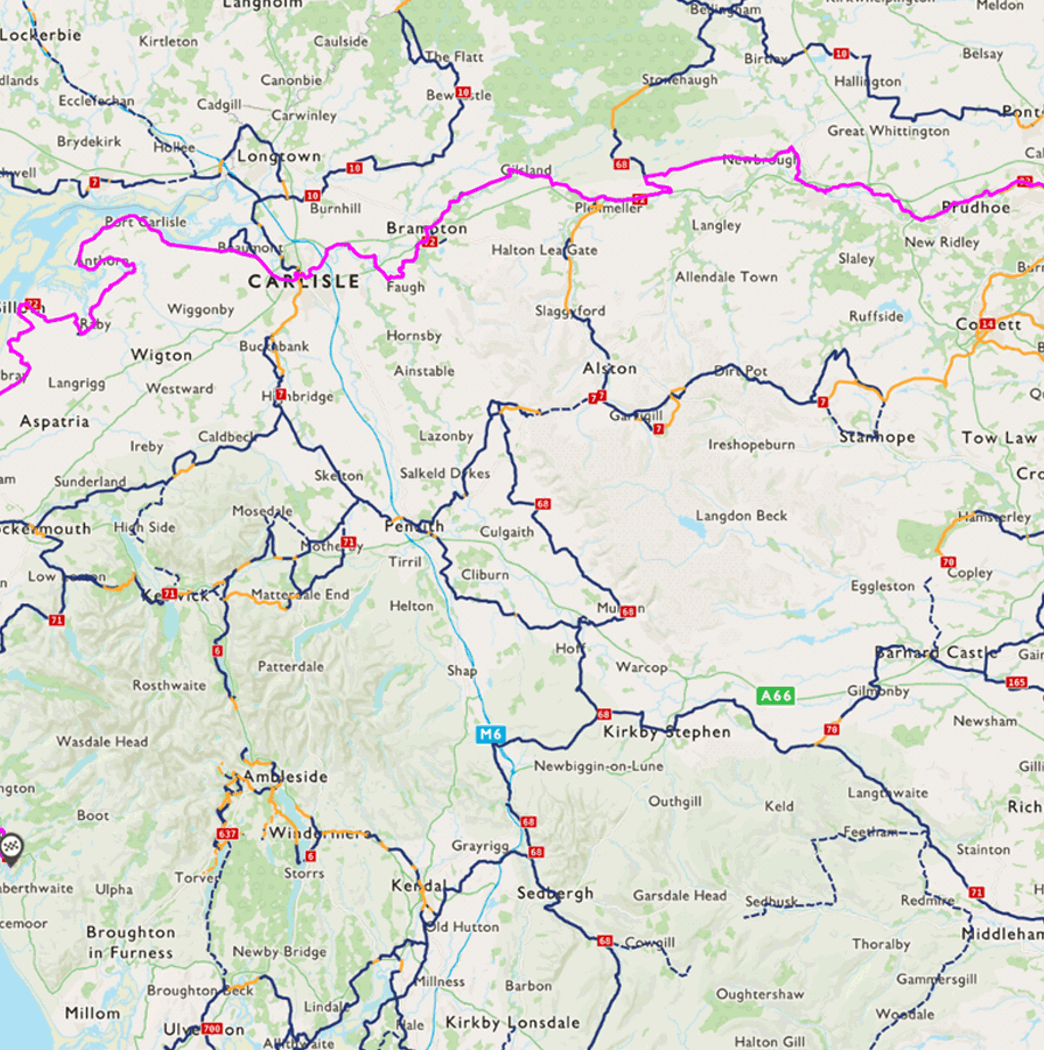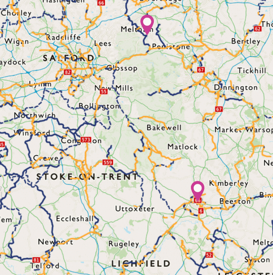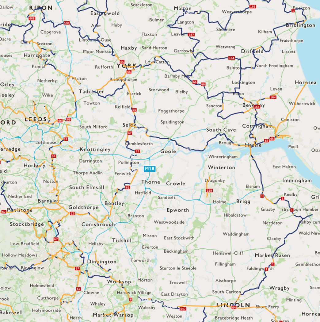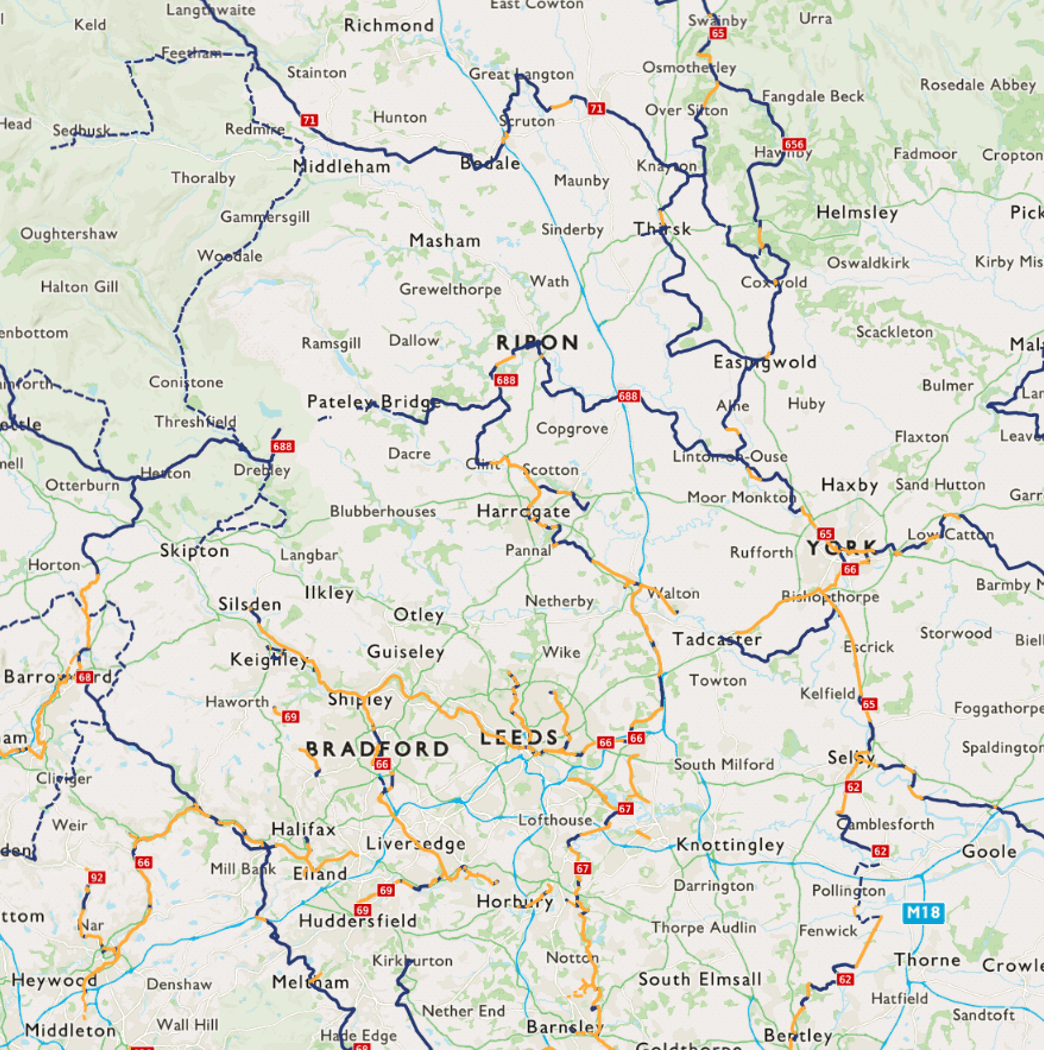 Keep an eye out for the hexagon on our route pages. This symbol means that some or all of the route is not on the Network.