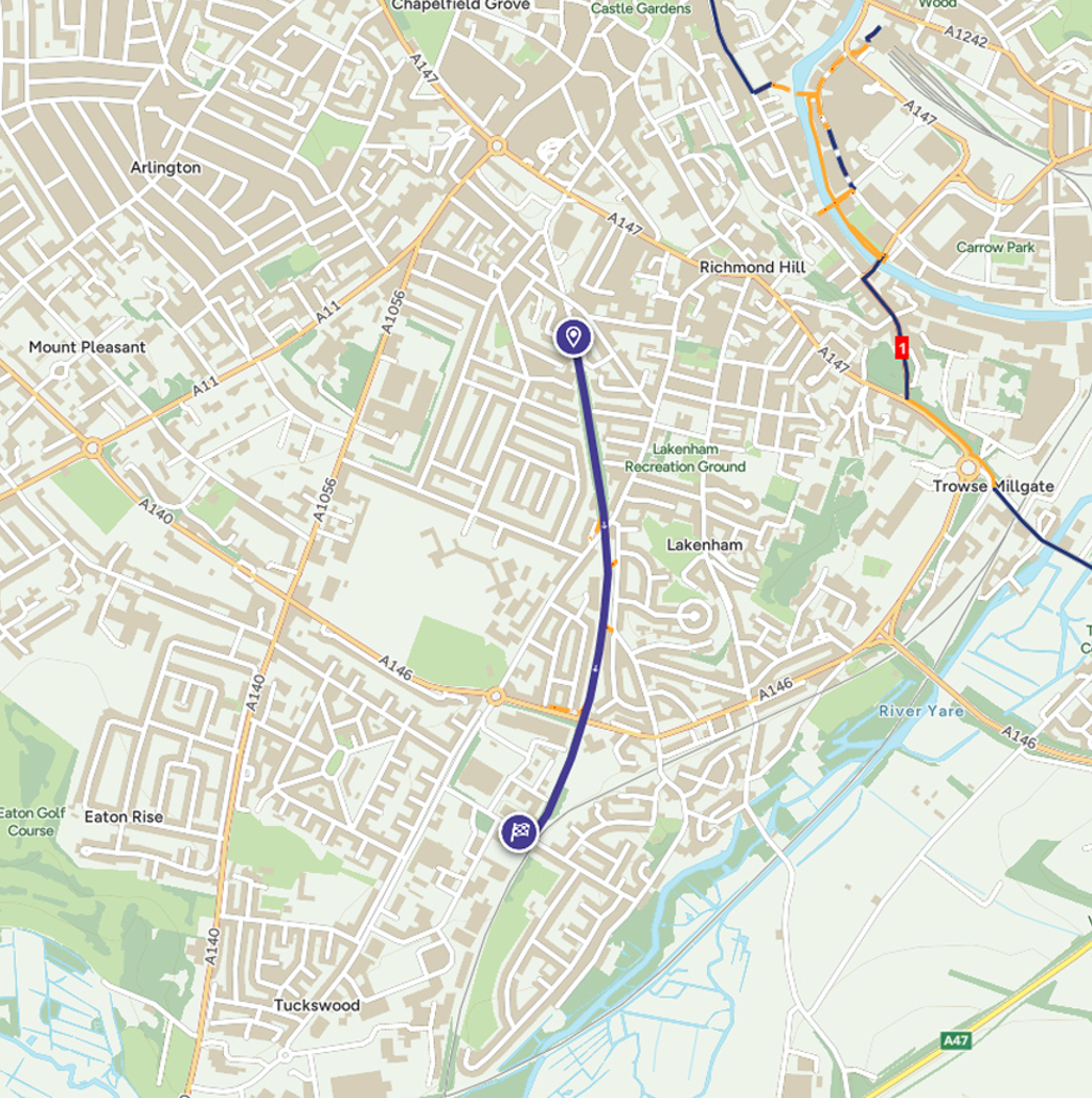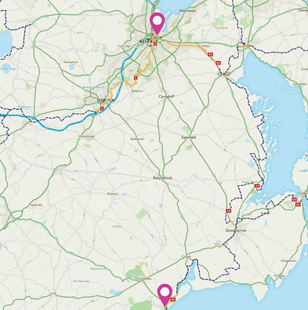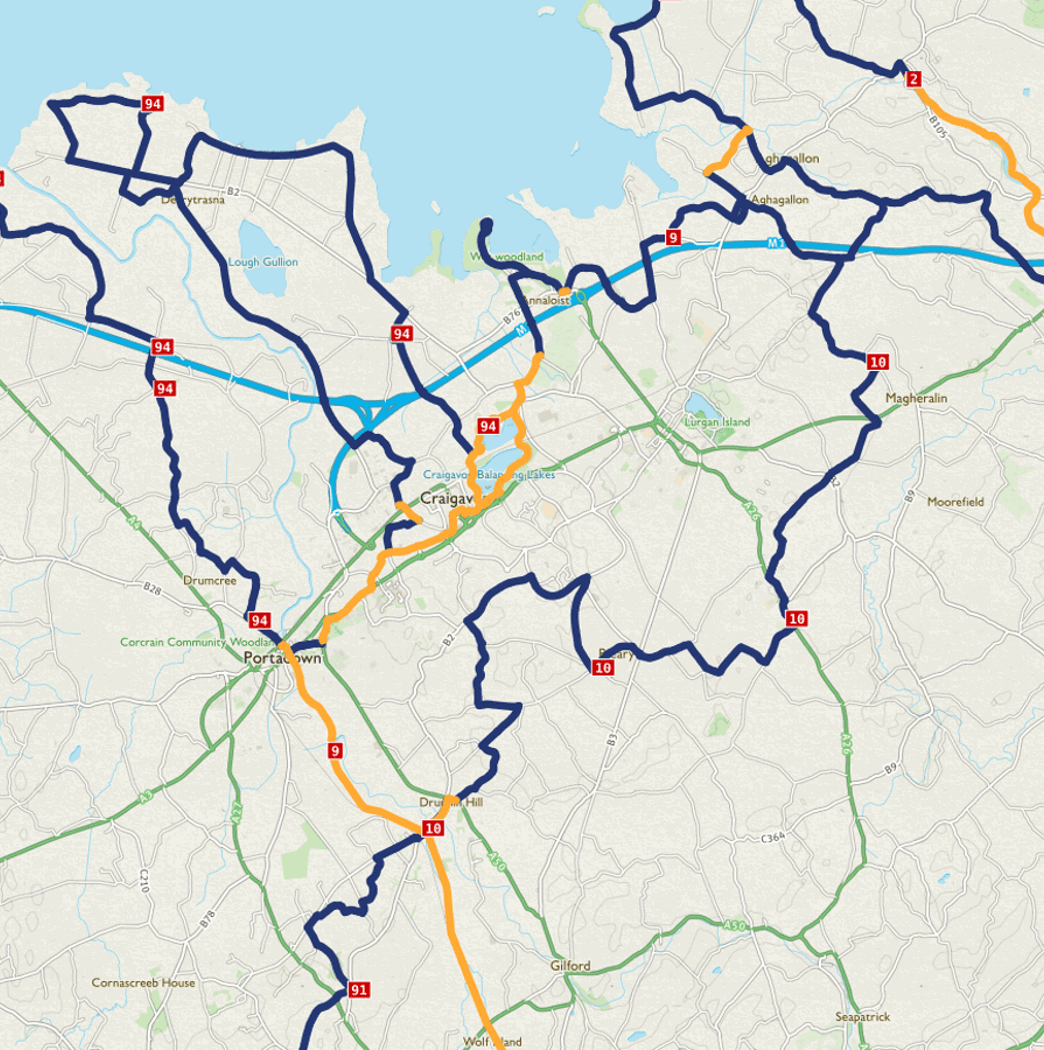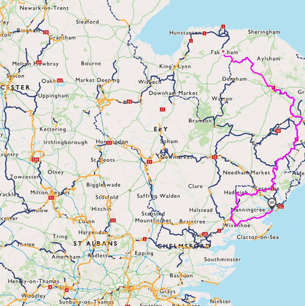 Keep an eye out for the hexagon on our route pages. This symbol means that some or all of the route is not on the Network.