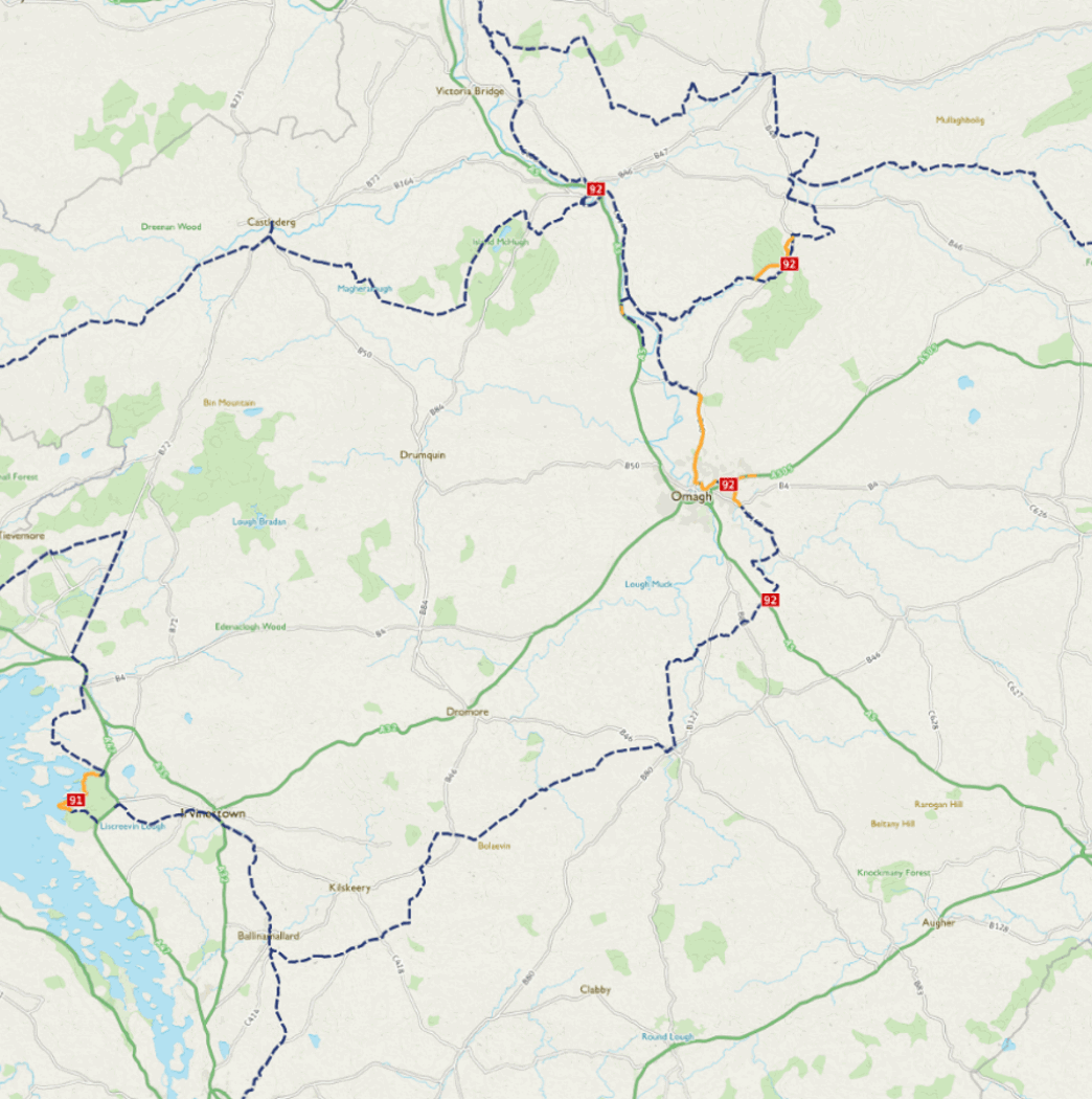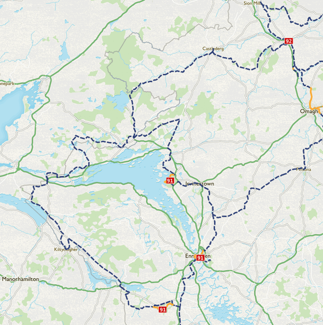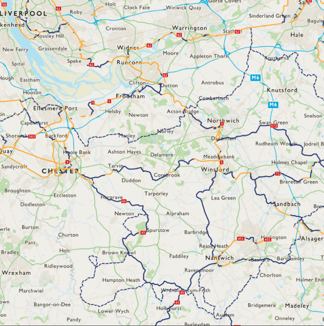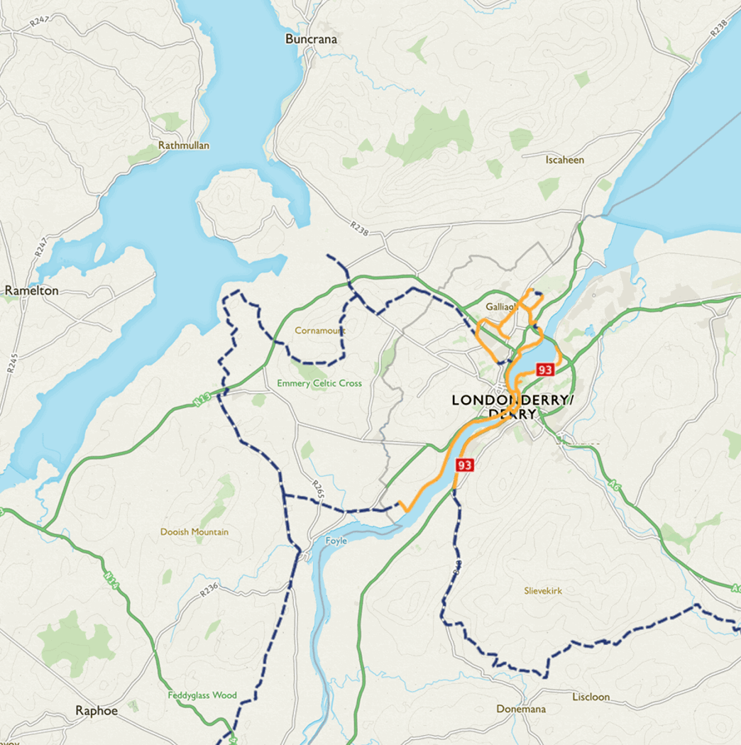 Keep an eye out for the hexagon on our route pages. This symbol means that some or all of the route is not on the Network.