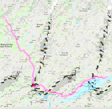 Follow the B898 to the listed bridge at Logierait where the route joins National Route 7 (Inverness to Glasgow).