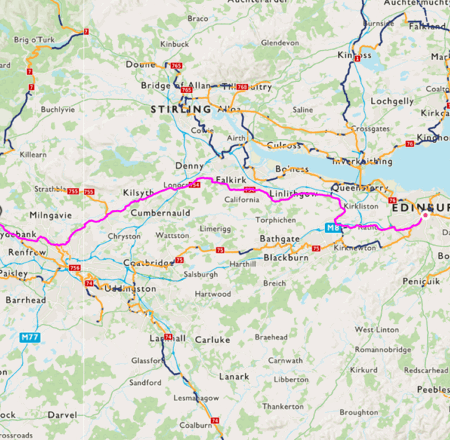 Route 754 links with the Forth & Clyde Canal at the Falkirk Wheel, a rotating boat lift that was built in 2000.