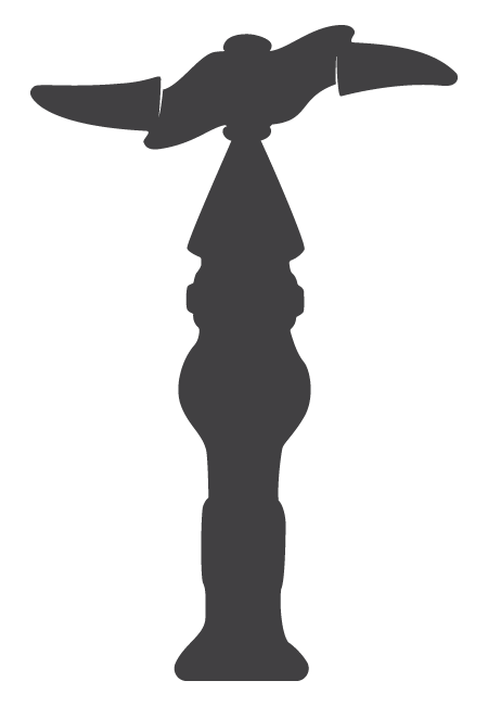 The Scottish sculptor Iain McColl designed the second post, The Cockerel.