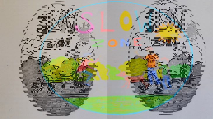 Other designs include a colourful entrance sign for the Greenway, and positive messages to encourage people to slow down.