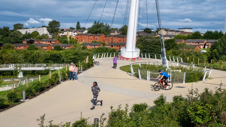 Aiming to offer residents and visitors an attractive greenspace whilst also boosting active travel, the new park has helped support a 270% increase in walking, wheeling and cycling in the project area.