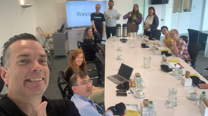 St Anne’s students posing with Schwalbe staff at their head office in Telford. Credit: Ray, Walk Wheel Cycle Trust
